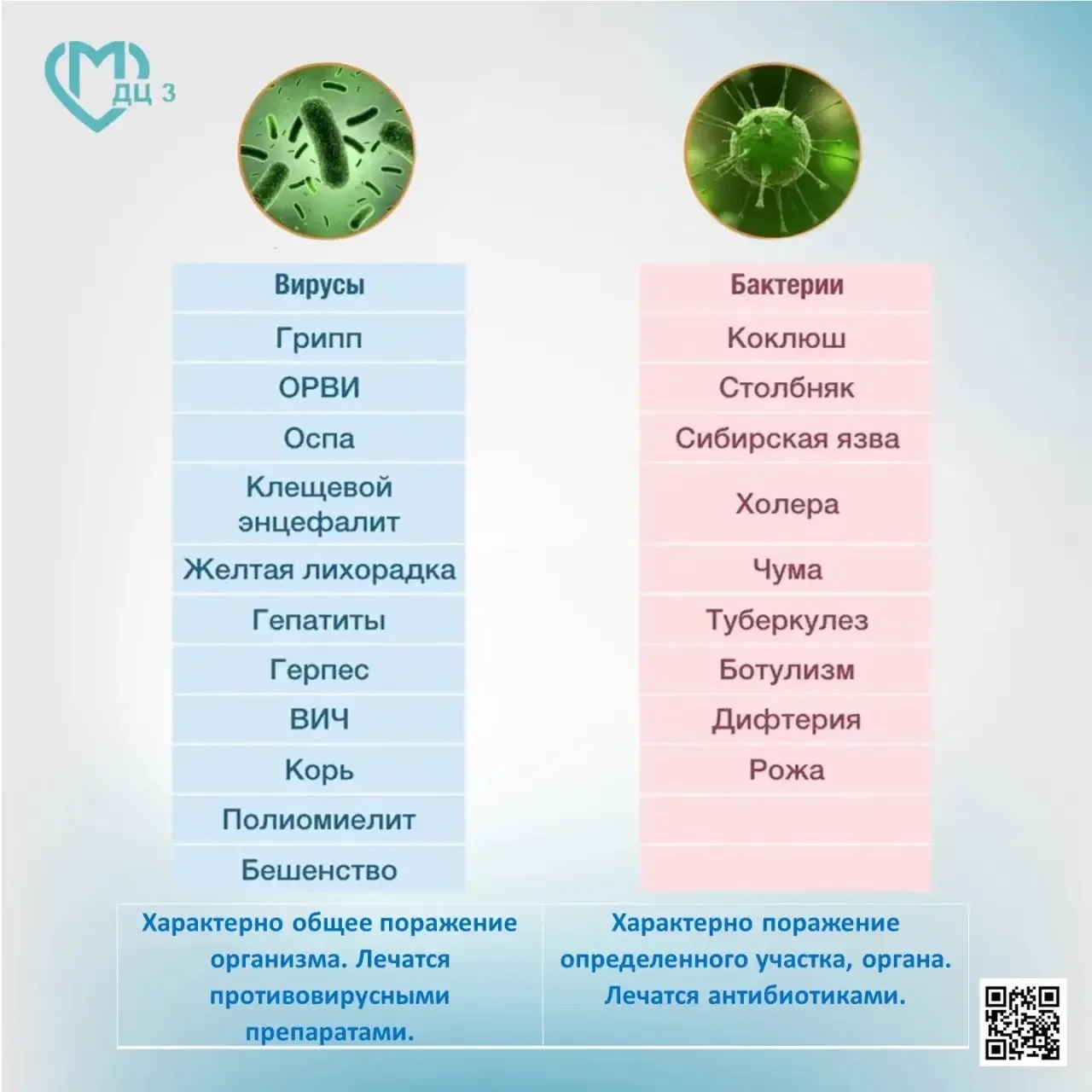 - Вирусы и бактерии — разные возбудители инфекций, и подход к лечению у них разный.